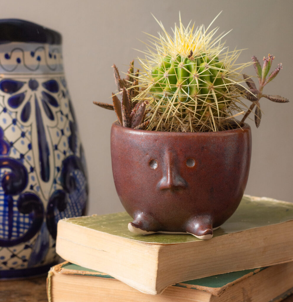 Con el tiempo y los viajes románticos de la pareja a Tlaquepaque y Tonalá, tierra del barro y la cerámica, se transformaron en expediciones creativas. Entre tazas con rostro y macetas llenas de personalidad, fui encontrando mi identidad: un puente entre el arte popular y el diseño contemporáneo. Ahí crecí de sólo gráfica a arte folclórico y utilitario. Piezas que puedes usar.